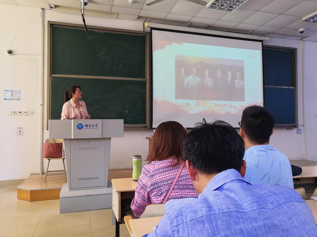 党史学习教育宣讲团成员、马克思主义学院副教授彭婕担任主讲人,宣讲会由党总支副书记李明月主持,全体教职工参加。