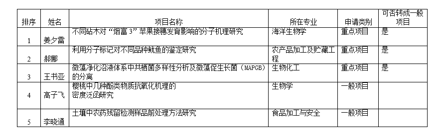 生科院研究生科技创新基金项目申报情况公示