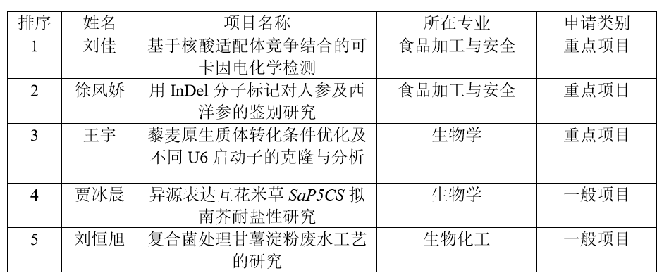 生科院研究生科技创新基金项目申报公示