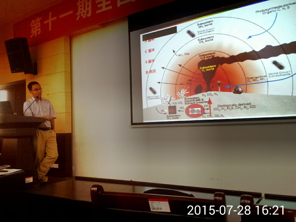 在本次报告中,王勇研究员首先简要介绍了国际上围绕深海热液盐卤池和低温冷泉周围的生态群落特征及其能量代谢研究进展;结合其在深海热液口微生物群落种群和代谢特征的研究工作,详细介绍了宏基因组技术在解析深海微生物群落方面的应用;进一步探讨了深海热液口微环境在深海微生物起源和进化中的关键作用。现场各位师生与王勇研究员就深海极端环境与生命进化、宏基因组技术在极端生境生态系统研究领域的应用等进行了交流探讨,并表达了进一步交流合作的意愿。