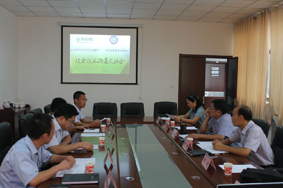 9月10日上午,由青州市何官镇党委书记曹建国带队,山东京青农业科技有限公司总经理郭中成及生产总监、研发部经理等共6人来到我院,与我院微生物专家商谈校企技术合作事宜,院党总支书记丁峰、副院长贺君、林剑及相关专业教师出席了此次交流会。双方就科技合作、技术交流达成共识,并初步形成合作意向。