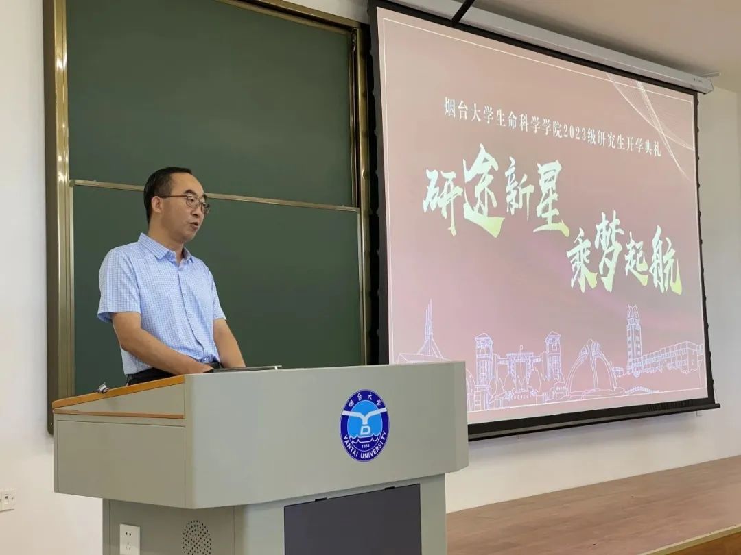 全体师生热烈欢迎126名硕士研究生的到来,他围绕研究生阶段的发展与成长,对即将踏入学术新征途的新生们提出三点要求:一练就过硬本领,二全面综合发展,三勇担时代责任。学院院长孙利芹分别就学院的发展历程、学位点与研究生培养、师资队伍与科研实力等方面向同学们做了详细的介绍,鼓励同学们树立科研信心,培养奋勇攀登的学术品质。导师代表王绪敏结合自身经历与大家分享读研经验,希望同学们尽快适应研究生的新身份,培养独立思考的习惯,脚踏实地做有深度的创新研究。新生代表杜永铎说:“作为一名13级的本科生,作为一名23级的研究生,更作为一名老生科人,我感到无比的骄傲与自豪。希望同学们作为生科人在接下来的三年中不懈探索、踔厉奋发,怀揣对世界的热爱,在烟大成为更优秀的自己,收获更美好的未来。”在场同学深受鼓舞,台下响起阵阵掌声。