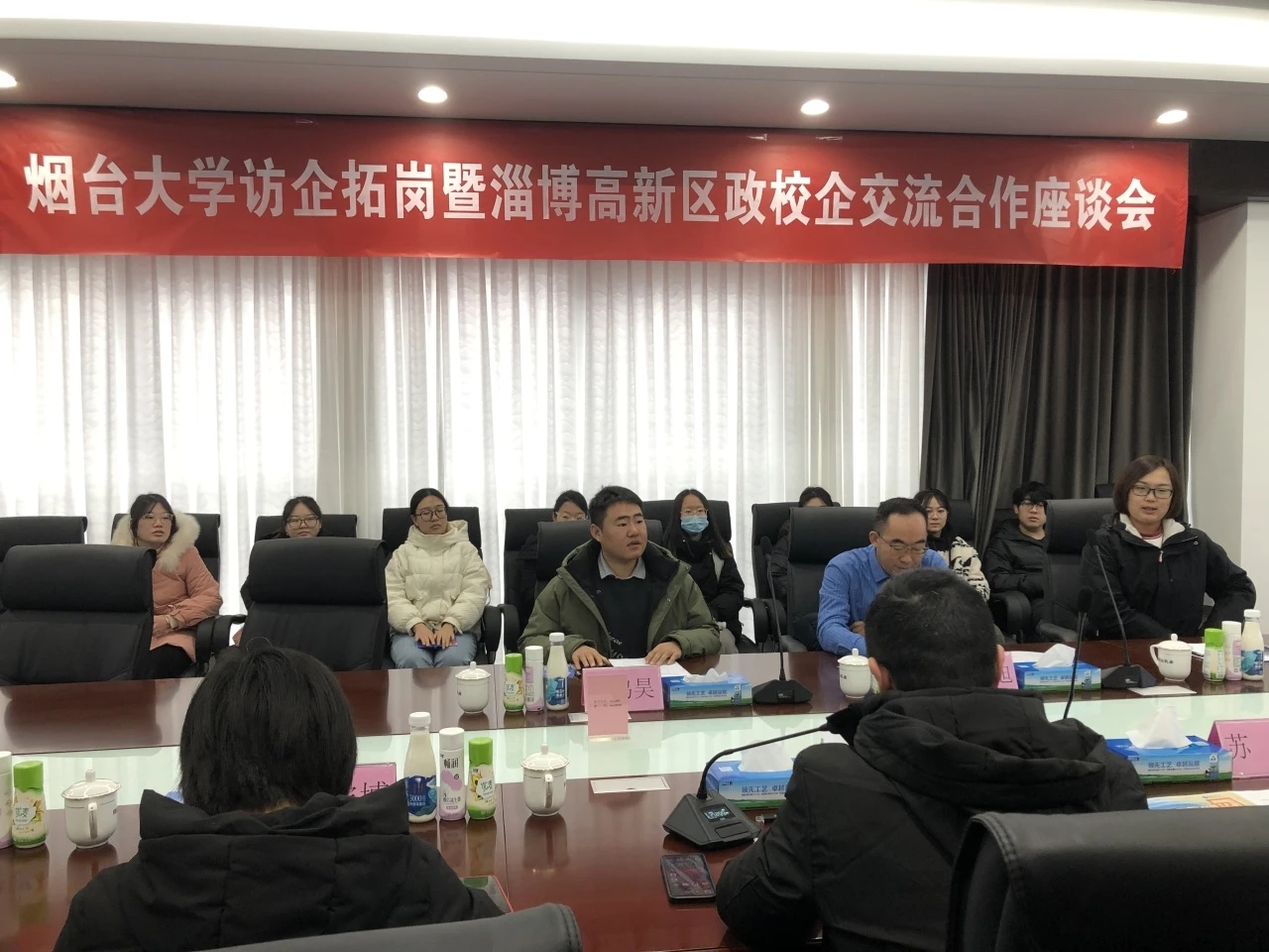 党总支书记王者旭带领毕业年级辅导员、毕业生代表前往淄博市高新区开展访企拓岗暨政校企合作交流活动。淄博市高新区人社中心副主任苏媛、就业与人才服务科科长董乃波陪同参加。