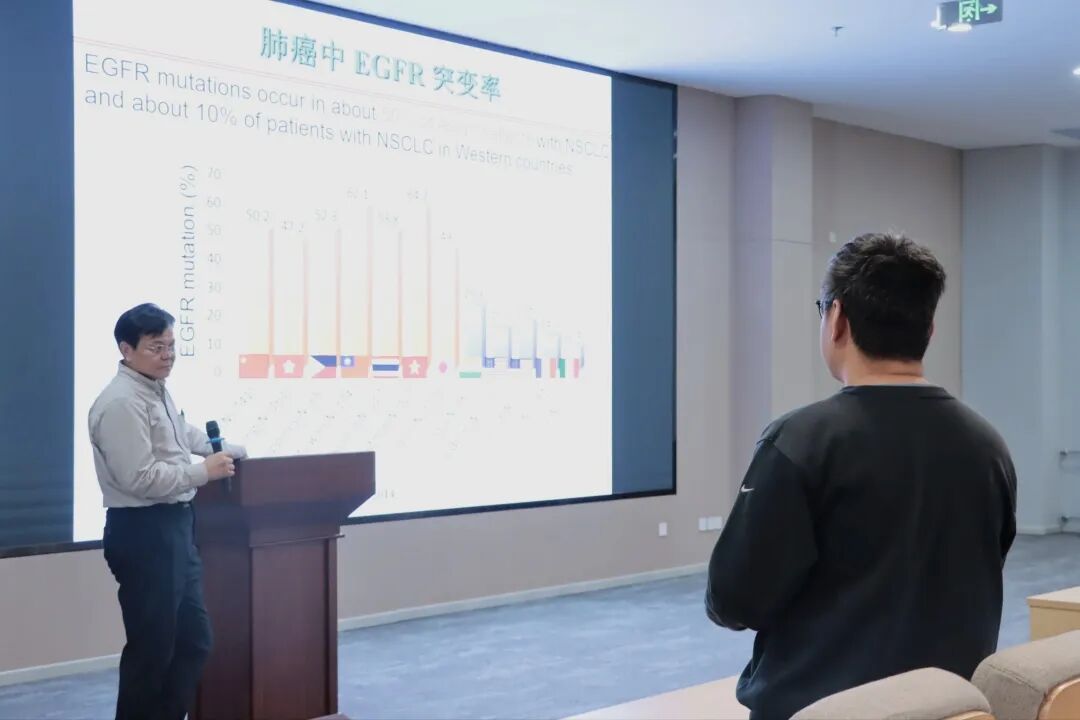 报告中,苏晓东教授围绕着“基于三原子分辨率结构的药物研发”这一主题进行分享。他结合自己的研究实例,从现代药物研发的基本原则切入,阐释了原子结构层面的分子相互作用力作为生物学机理底层了解的重要性。同时,他深入讲解了小分子、蛋白质、抗体以及基因治疗载体AVV的药物研发与改进过程,将前沿的科研思维与实际应用紧密相连,内容兼具学术研究与实践价值,让同学们了解到一线科研工作的具体内容,激发了同学们的学习动力。