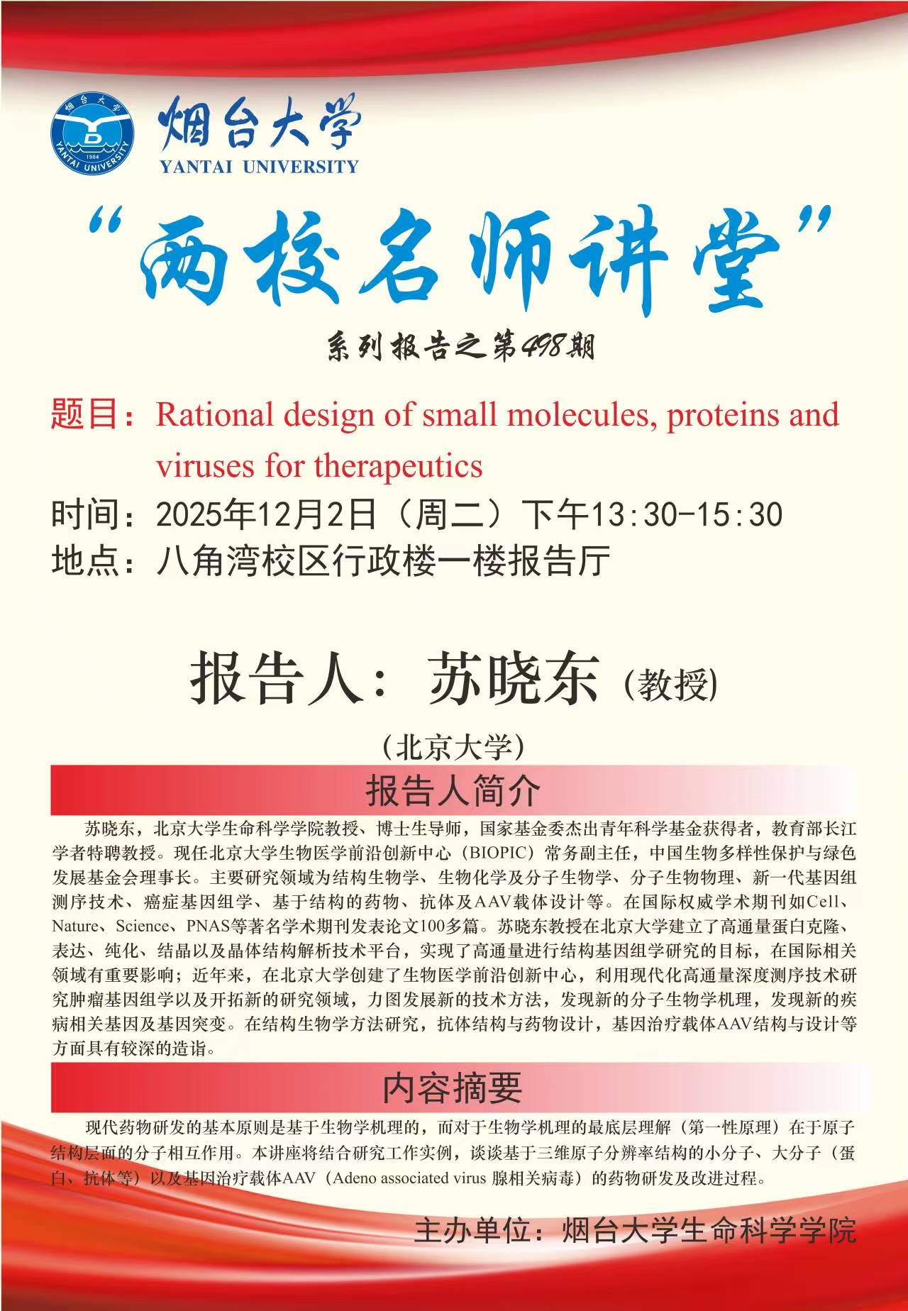 题目:Rational design of small molecules, proteins and viruses for therapeutics