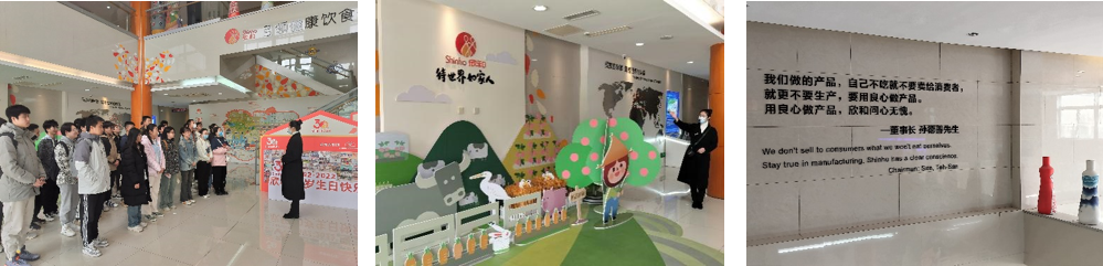 春和景明研学时,3月28日,院团委副书记吕泽毅带领学院本硕30余名本硕学生前往烟台欣和食育体验馆参观学习。欣和集团作为山东省重点龙头企业,创建已有30余年,是高端调味品及休闲食品行业的先锋企业,也与生科院在就业招聘、专业实践等方面联系密切。